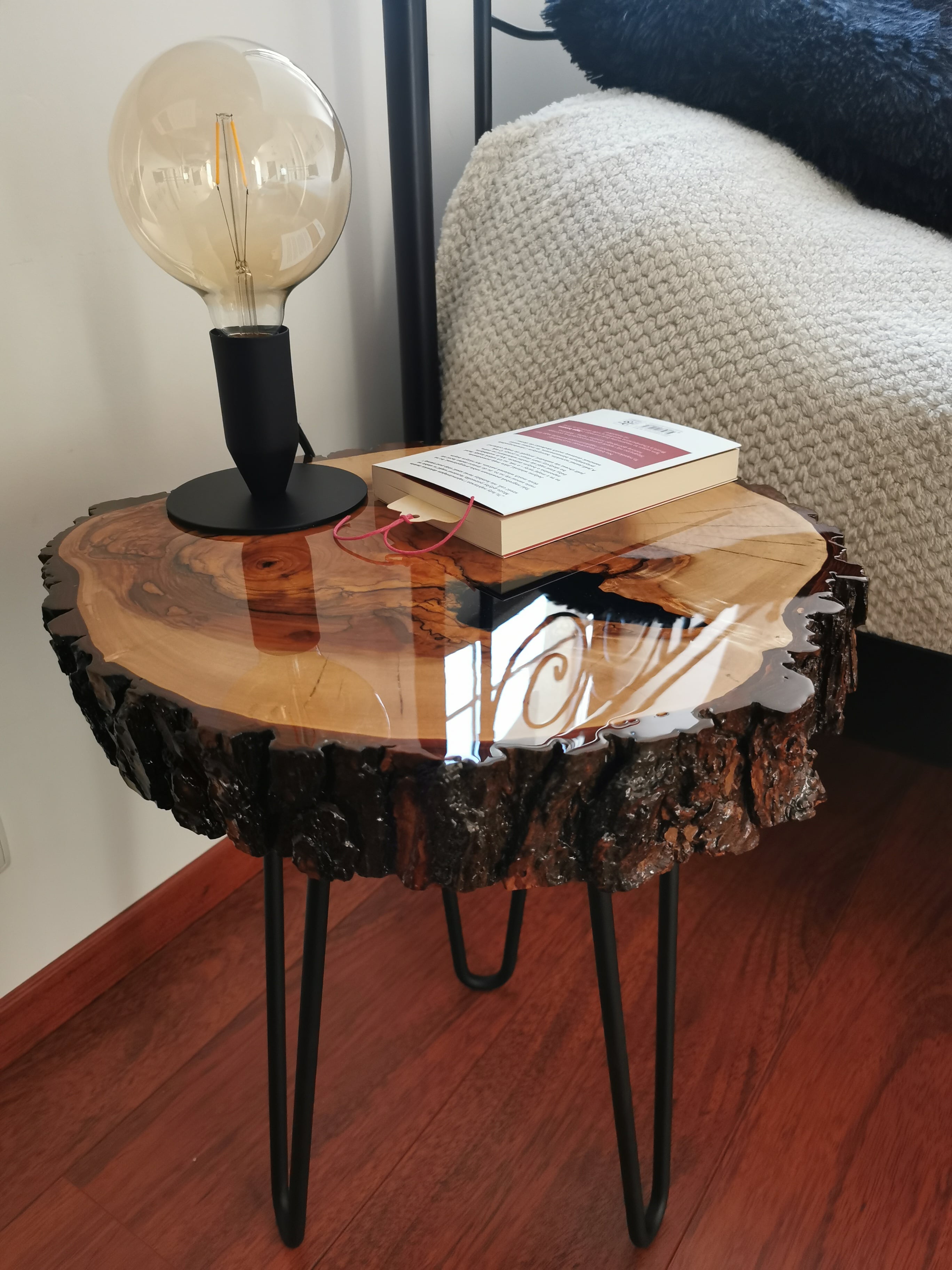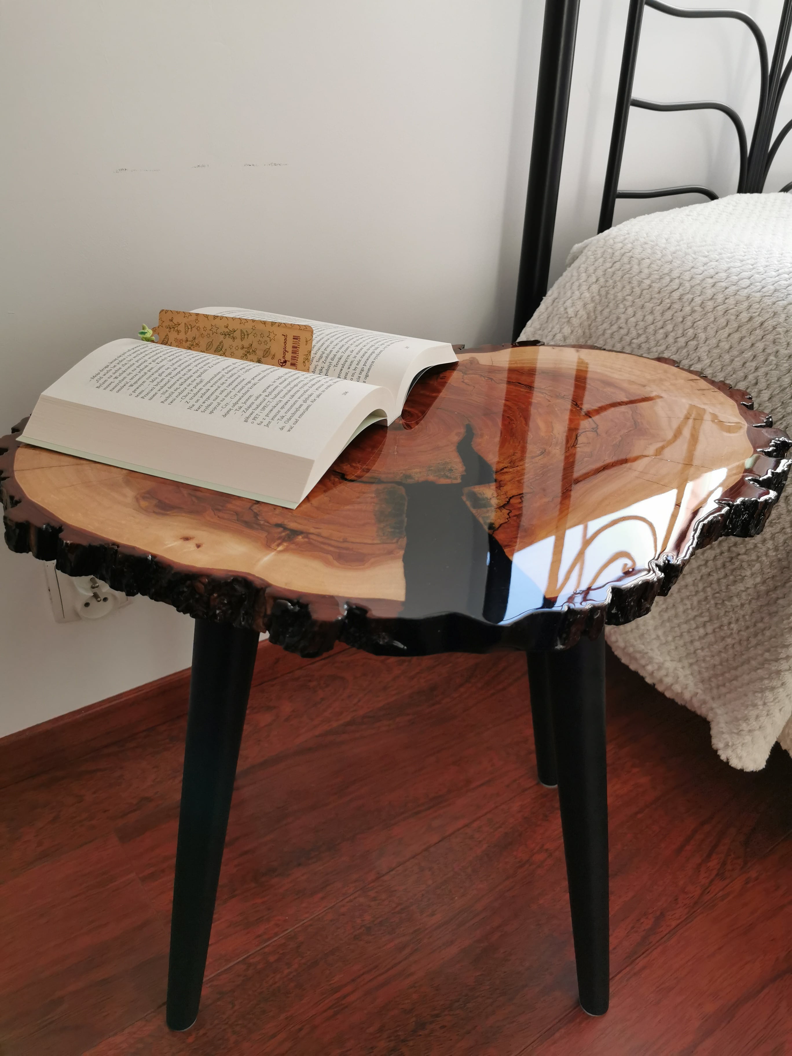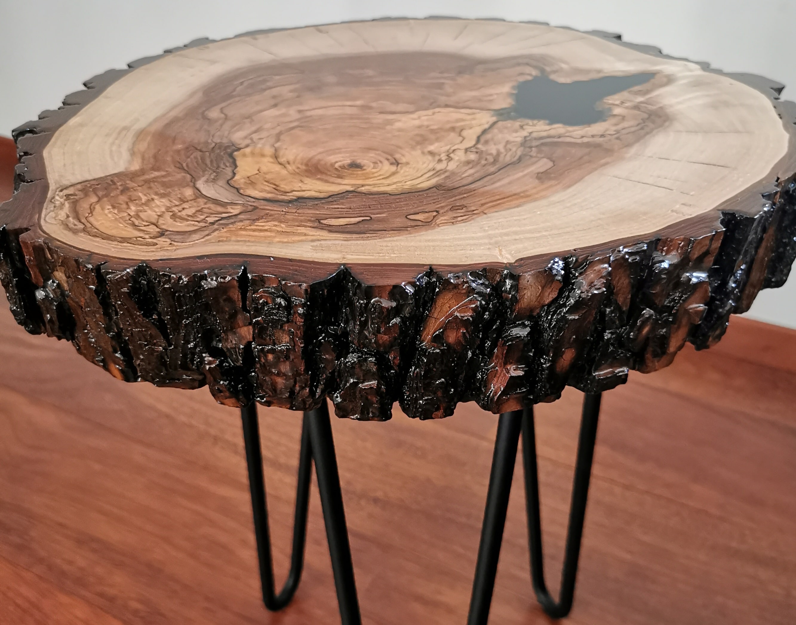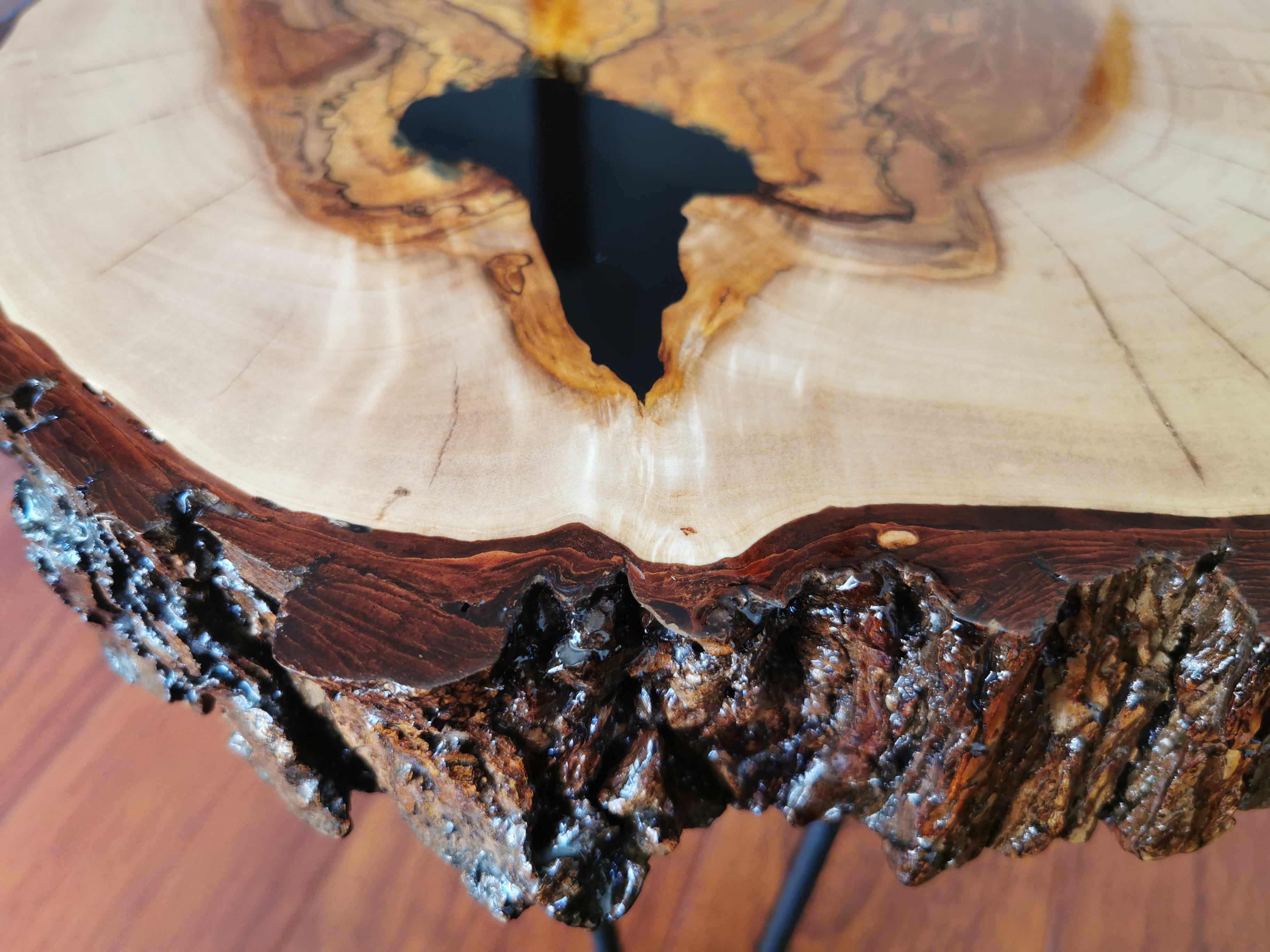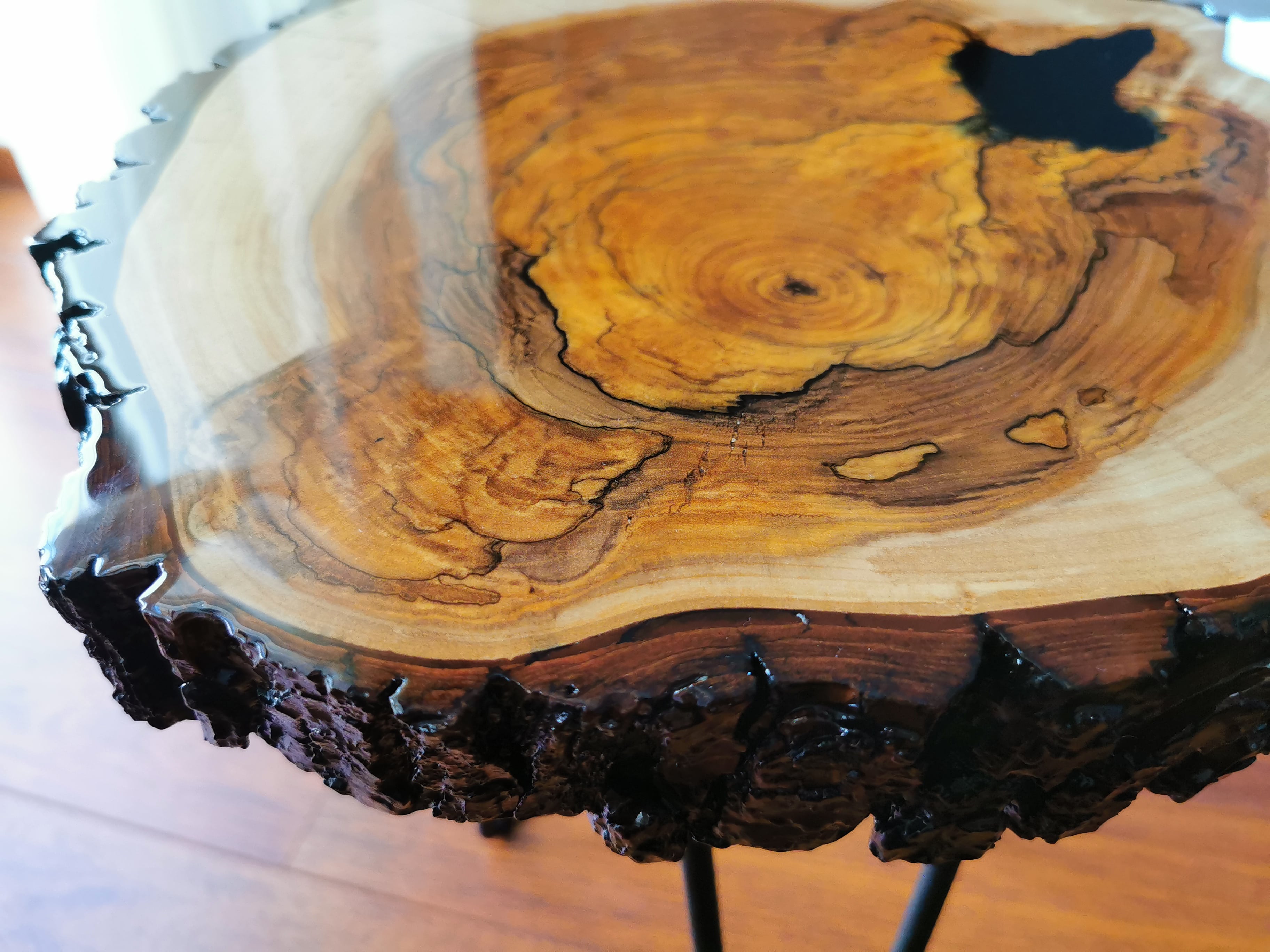 Przepiękne usłojenie wierzby w tym stoliku stawia go w gronie najciekawszych i najbardziej oryginalnych plastrów w mojej kolekcji. Obraz stworzony przez naturę naprawdę urzeka. Blat stołu zaimpregnowany i wzmocniony został żywicą epoksydową. Tą samą żywicą jest wykonany kanion w kolorze głębokiej czerni. Całość zabezpieczona z dwóch stron dwuskładnikowym lakierem poliuretanowym włoskiego producenta ICA. Lakier nanoszony pistoletem natryskowym. Wypolerowany na wysoki połysk. Nogi w stylu Hairpin wykonane z metalu.