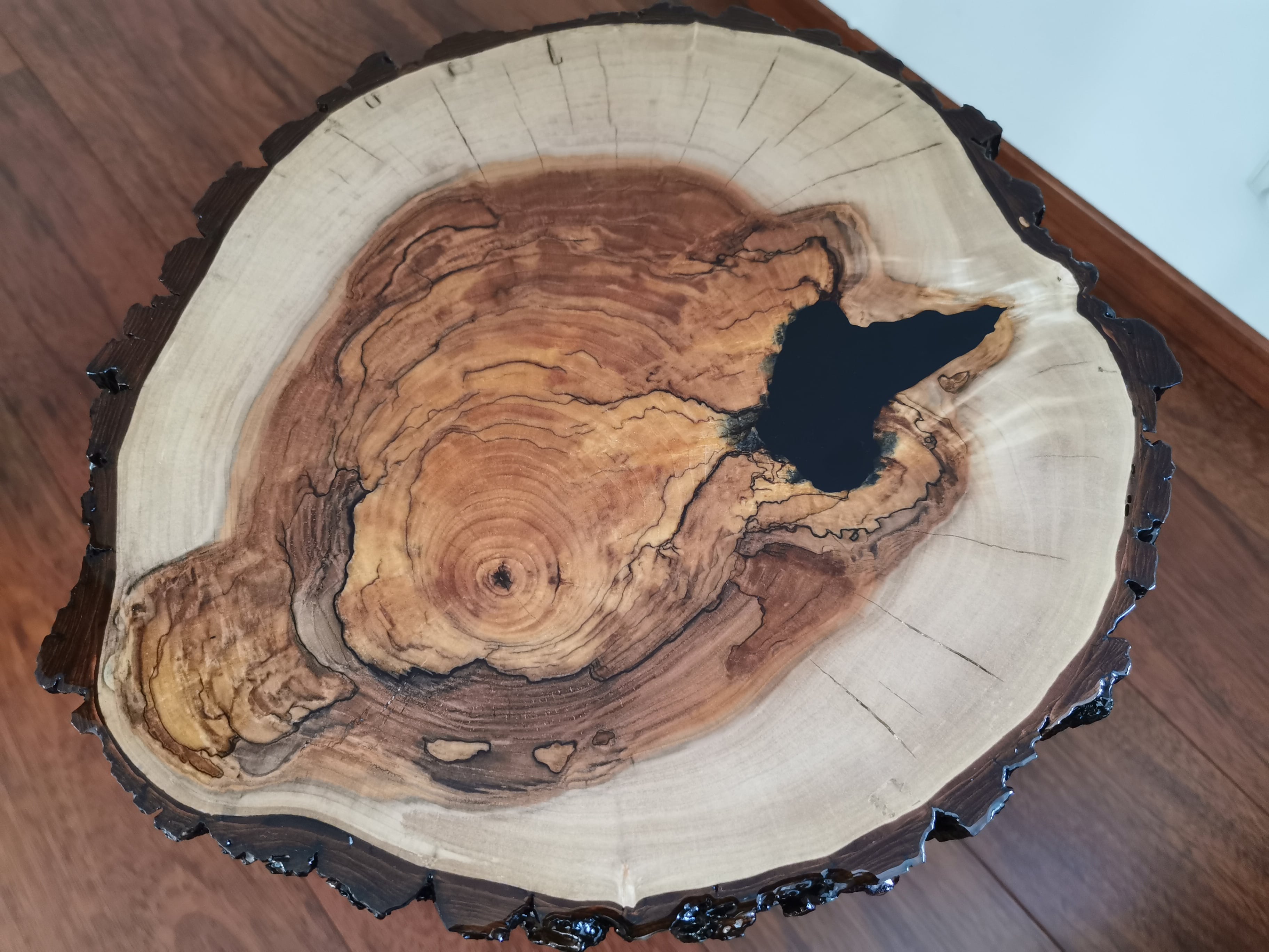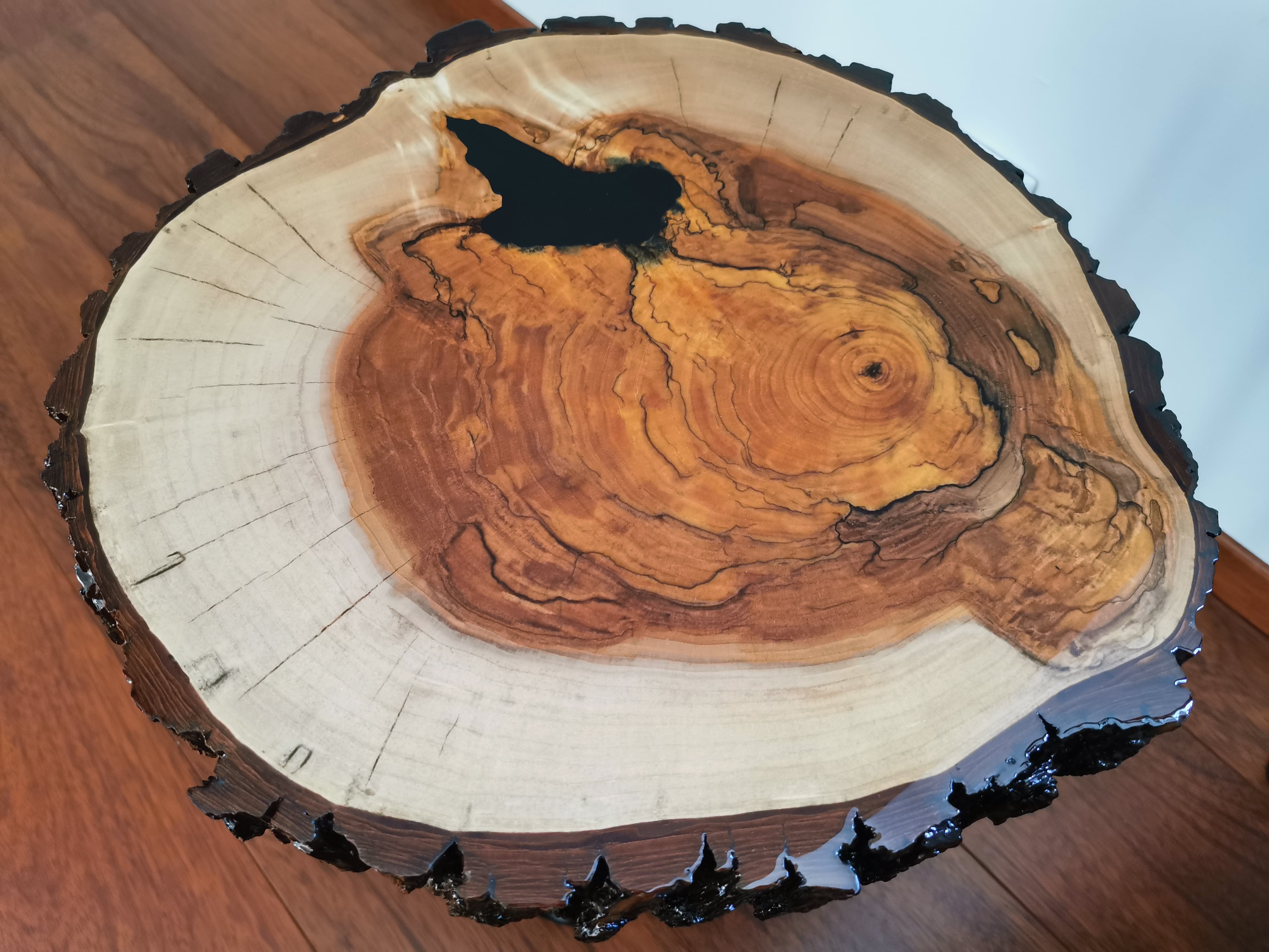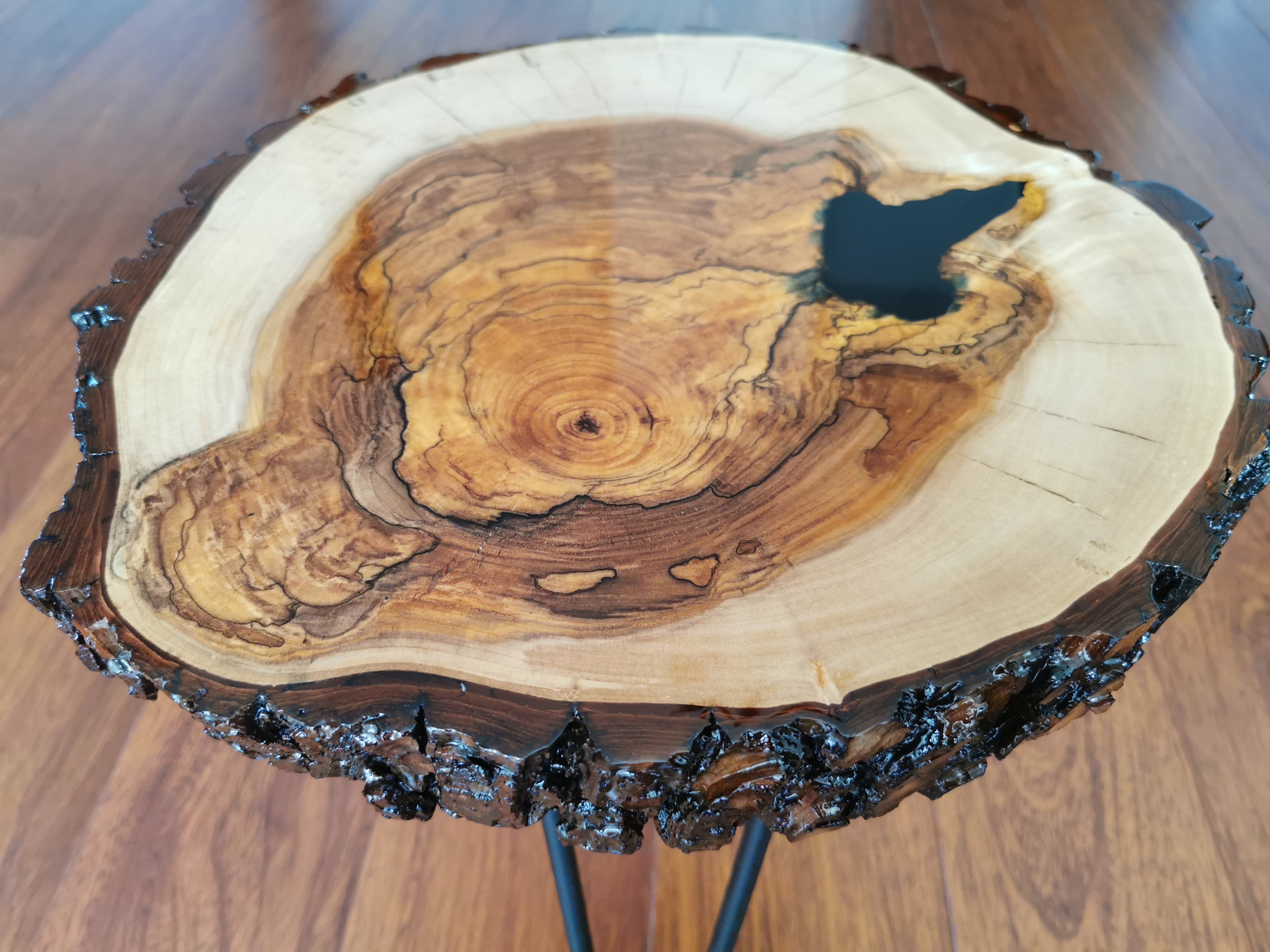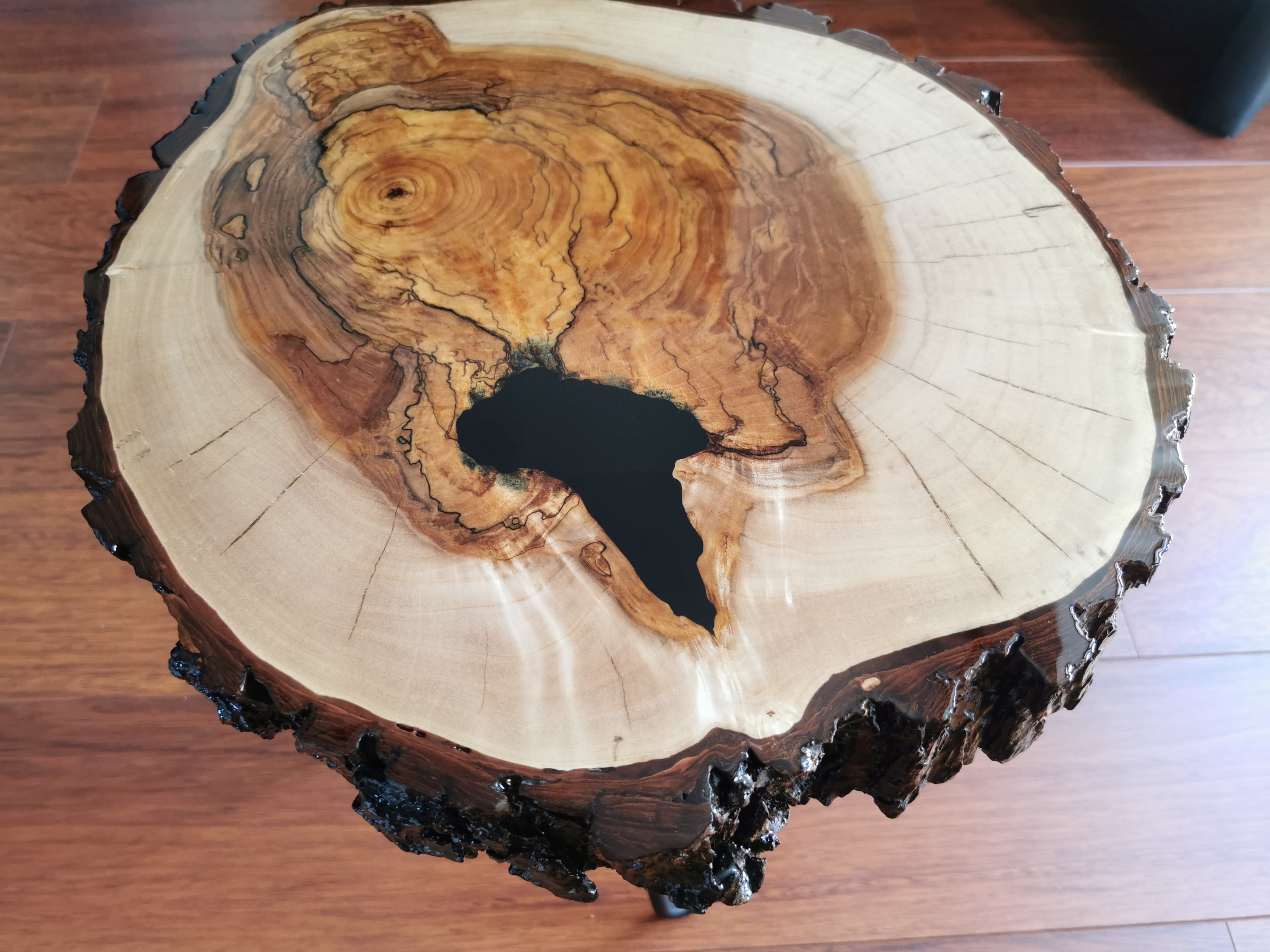 Przepiękne usłojenie wierzby w tym stoliku stawia go w gronie najciekawszych i najbardziej oryginalnych plastrów w mojej kolekcji. Obraz stworzony przez naturę naprawdę urzeka. Blat stołu zaimpregnowany i wzmocniony został żywicą epoksydową. Tą samą żywicą jest wykonany kanion w kolorze głębokiej czerni. Całość zabezpieczona z dwóch stron dwuskładnikowym lakierem poliuretanowym włoskiego producenta ICA. Lakier nanoszony pistoletem natryskowym. Wypolerowany na wysoki połysk. Nogi w stylu Hairpin wykonane z metalu.